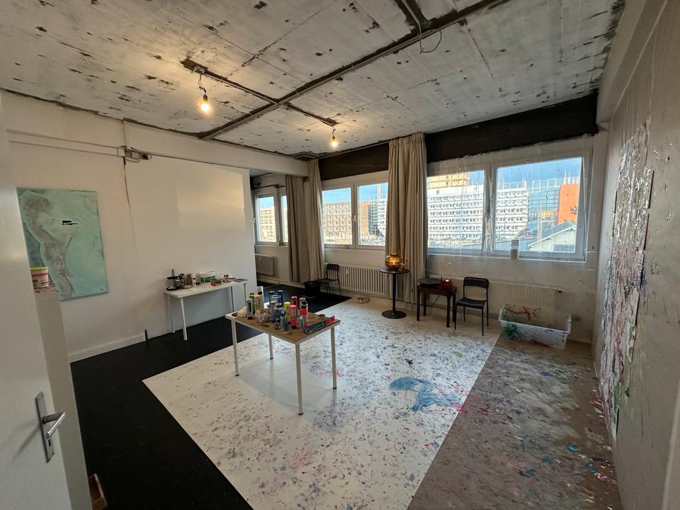 Ich vermiete ab dem 01.03.2026 einen Teil meines Ateliers in Mainz, gelegen in der Rheinallee am Nordhafen. Die Lage ist sehr zentral, mit sogar einem kleinen Blick auf den Rhein.